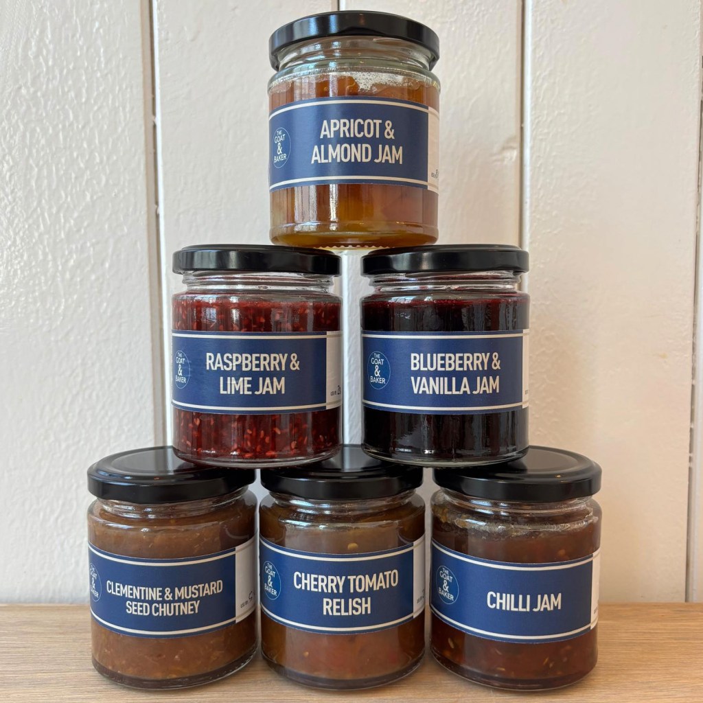We stock The Goat & Baker jams and chutneys here at 3 Church Square. Choose from Clementine & Mustard Seed Chutney, Cherry Tomato Relish, Chilli Jam, Blueberry & Vanilla Jam, Raspberry & Lime Jam and Apricot & Almond Jam. If you enjoy our fruit or savoury scones you will be familiar with the tasty jams!